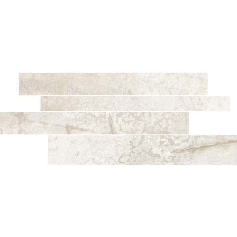 Fagyálló. Mozaik fehér színben mérete 30x60 cm vastagsága 10 mm kőutánzatban matt felülettel. Nagy és véletlenszerű eltérésekkel a színárnyalatban, a felületi textúrában és a rajzban.PEI 5 – Nagyon erős kopásállóság, kereskedelmi igénybevételnek kitett területek - szállodák, bevásárlóközpontok, éttermek, iskolák