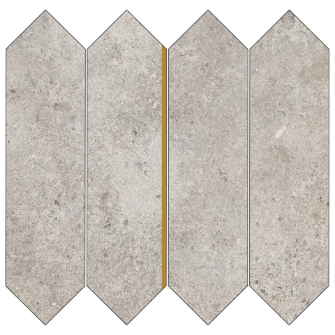 Vágot élű. Fagyállló. Mozaik hamuban fémes kivitelben vastagsága 9 mm matt felülettel. Beltérbe és kültérbe is alkalmas. Kis eltérésekkel a színárnyalatban, a felületi textúrában és a rajzban. Rendkívül kopásálló. Alkalmas szállodai csarnokokba, üzletekbe és garázsokba.