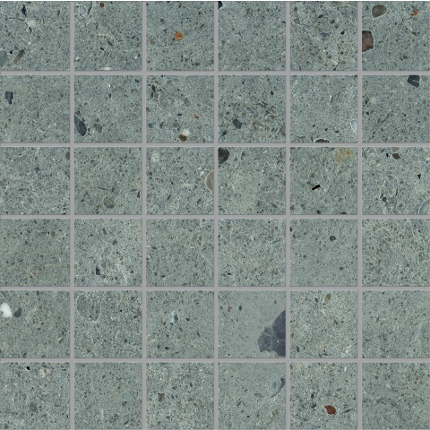 Mozaik szürke színben mérete 29,8x29,8 cm vastagsága 10 mm cement kivitelben matt felülettel. Nagy eltérésekkel a színárnyalatban, a felületi textúrában és a rajzban.PEI 4 – Erős kopásállóság - erősen igénybe vett területek - pl. folyosók, éléskamrák, teraszok, irodák mérete 5x5 cm