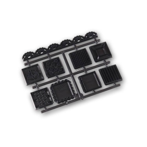 Látványos tortadíszítést készítenél egyszerűen? Ezzel a Mozaikok sziluett kiszúróval megkönnyítheted a dolgod! Nagyon gyorsan és egyszerűen készíthetsz különböző mintázatú mozaikokat a torta oldalára, vagy az egész felületére. A készletben egy szegélydísz kiszúró is található (11,5*1 cm). A négyzetek mintázatai között találsz pöttyös, virágos, sakk mintás, csíkos, cakkos szélű és harang lenyomatot is. A készletben található egy négyzetrács ki