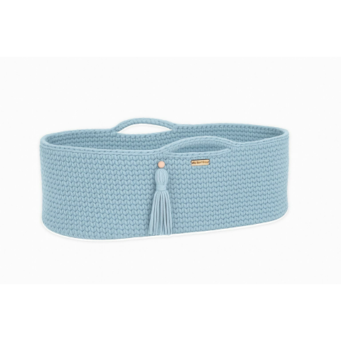 1 kép Mózeskosár BOHO Kézzel készített pamut matraccal - ködös kék