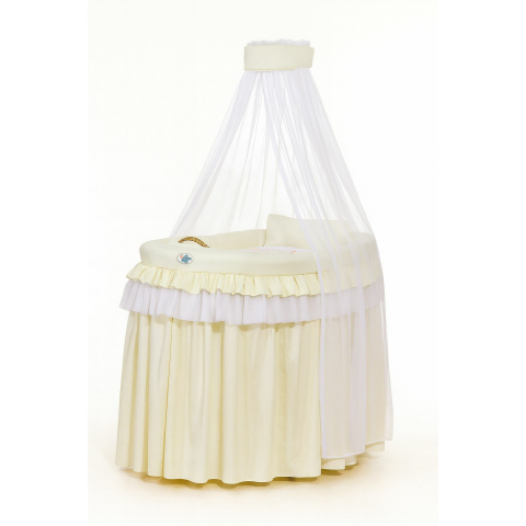 1 kép Mózeskosár fonott függönyös kiságy - Kis herceg krémszínű
