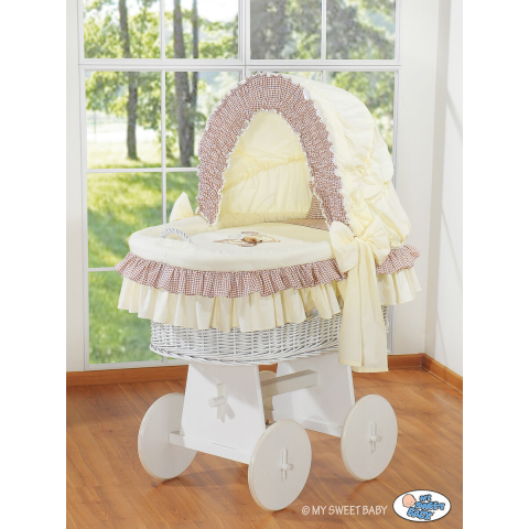 1 kép Mózeskosár/Fonott kiságy kapucnival - Barna mackó masnival