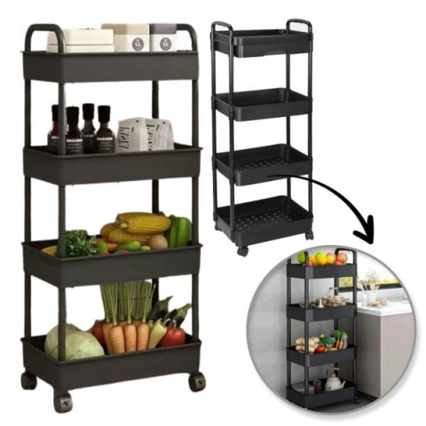 Mozgatható kerekes könyvespolc, 4 szint, fekete, 36x24x84 cm, SZ41 bútor termékleírás