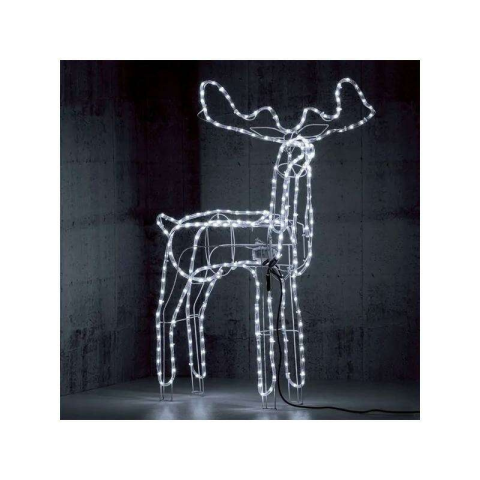 Mozgó fejű LED 3D rénszarvas kültéri dekoráció, 90 cm, hidegfehér Varázsoljon karácsonyi hangulatot udvarába, vagy otthonába ezzel a nagy méretű, látványos, mozgó fejű, világító rénszarvas figurával! A szarvas testét egy erős fém váz alkotja, melyre rögzítésre kerültek a rugalmas védőcsőben futó nagy fényerejű, ám mégis energiatakarékos LED fényforrások. A ledes rénszarvas kültérre és beltérre is egyaránt jó választás! A rénszarvas fejét egy