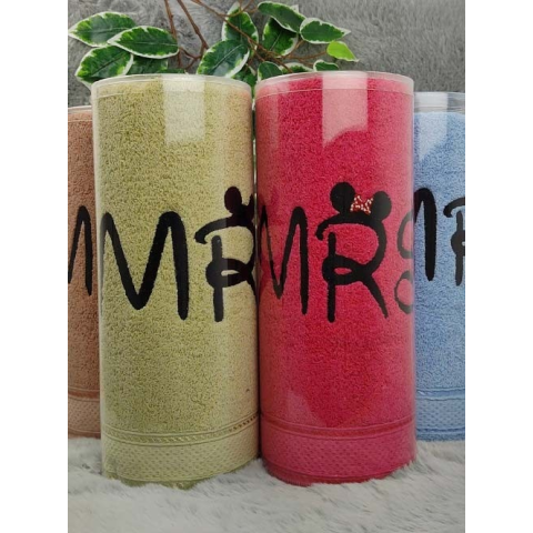 Mr és Mrs ajándék, hímzett páros törölköző szett MR és MRS felirattal. Mickey és Minnie mintákkal. Páros ajándék Valentin napra, születésnapra, névnapra, évfordulóra és esküvőre. Többféle színösszeállításban rendelhető páros törölköző. Puha, 100 % pamut t