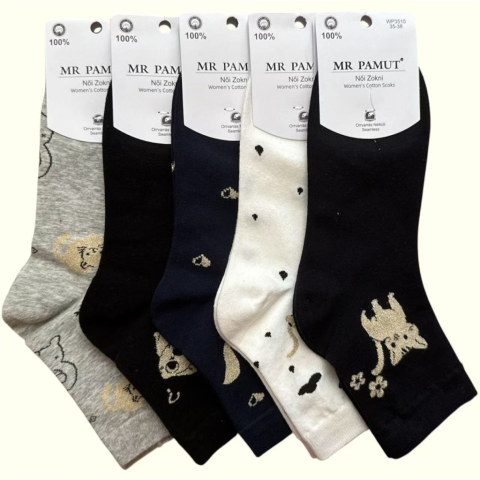 MR PAMUT női cicás mintás zokni – 5 pár/csomag, több színben Ez az 5 párból álló női zokni szett aranyos cicás mintákkal érkezik, többféle színkombinációban. A kedves állatminták játékos és nőies megjelenést kölcsönöznek a mindennapi viselethez. A pamut