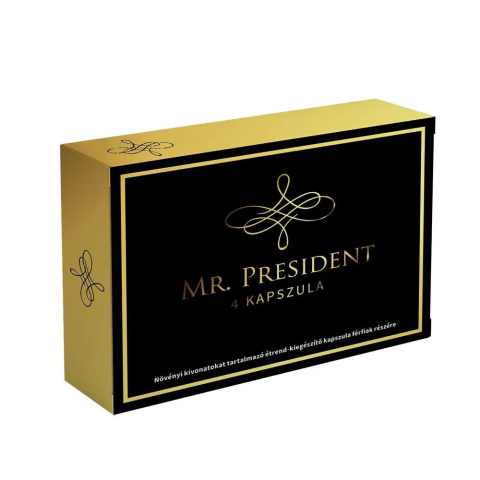 Mr.President, már a neve sugározza az erőt és a magabiztosságot! MR. PRESIDENT 4 KAPSZULA Mr. President gyógynövényeket tartalmazó étrend kiegészítő. (4 kapszula). Nettó tömeg: 1,6 g. Minőségét megőrzi a fólián jelzett időpontig (nap, hó, év). MrPresid