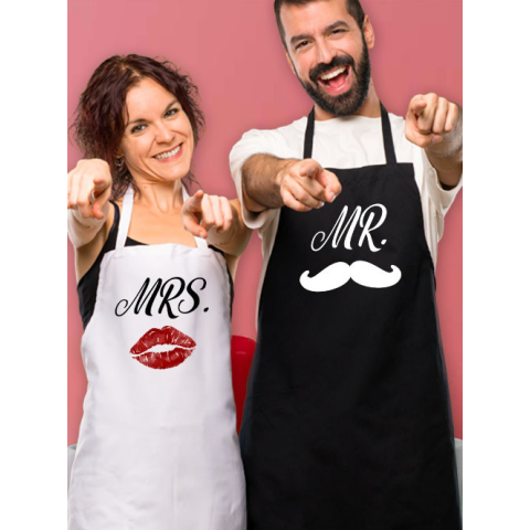 1 kép    Mrs Mr kötény - Bajusz és csókos száj