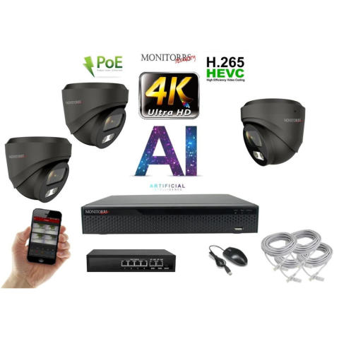 1 kép MS - 4K AI IP kamerarendszer 3 kamerával switchel 8 Mpix GD - 6377K3B