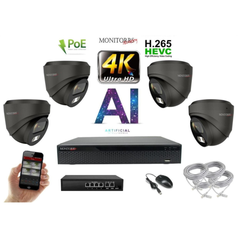 1 kép MS - 4K AI IP kamerarendszer 4 kamerával switchel 8 Mpix GD - 6377K4B