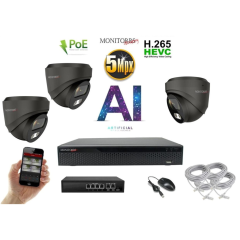 1 kép MS - AI IP Dóm kamerarendszer 3 kamerával switchel 5 Mpix GD - 6371K3B