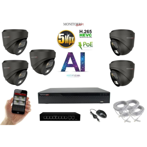 1 kép MS - AI IP Dóm kamerarendszer 5 kamerával switchel 5 Mpix GD - 6371K5B