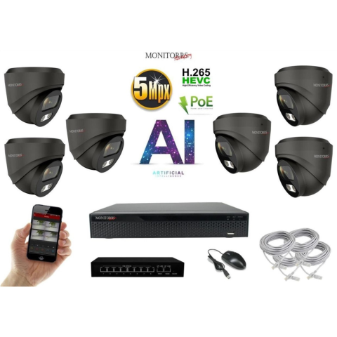 1 kép MS - AI IP Dóm kamerarendszer 6 kamerával switchel 5 Mpix GD - 6371K6B