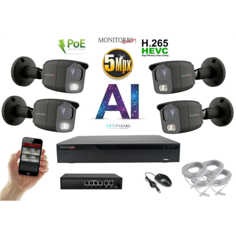 1 kép MS - AI IP kamerarendszer 4 kamerával switchel 5 Mpix GT - 6373K4B