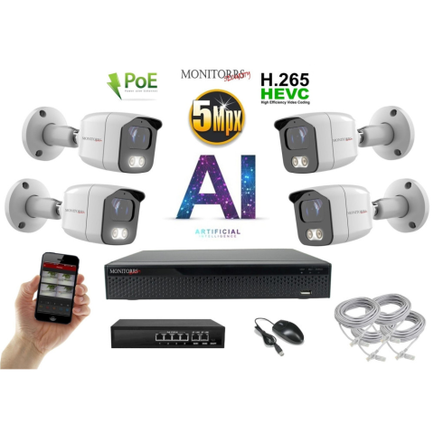 1 kép MS - AI IP kamerarendszer 4 kamerával switchel 5 Mpix WT - 6372K4B