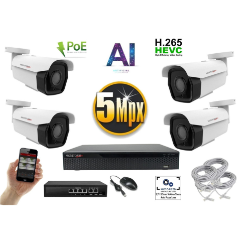 1 kép MS - AI IP park kamerarendszer 4 kamerával switchel 5 Mpix - 6185K4B