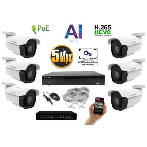 1 kép MS - AI IP park kamerarendszer 6 kamerával switchel 5 Mpix - 6185K6B