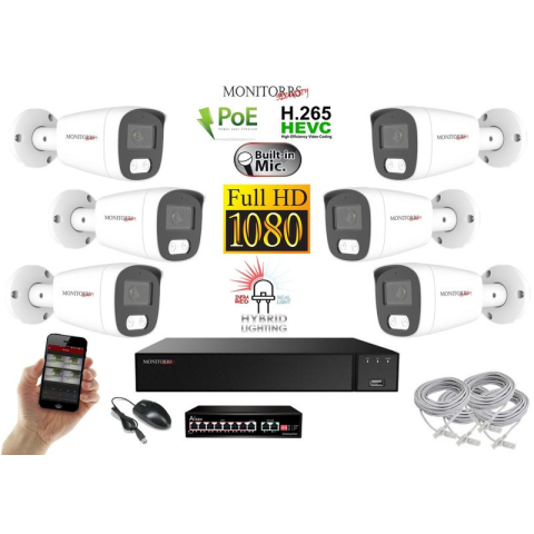 1 kép MS - Hybrid Light IP kamerarendszer 6 kamerával switchel 2 Mpix WT - 6213K6B