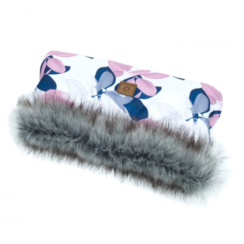 MTT kézmelegítő babakocsihoz - Fehér alapon rózsaszín és kék levelek