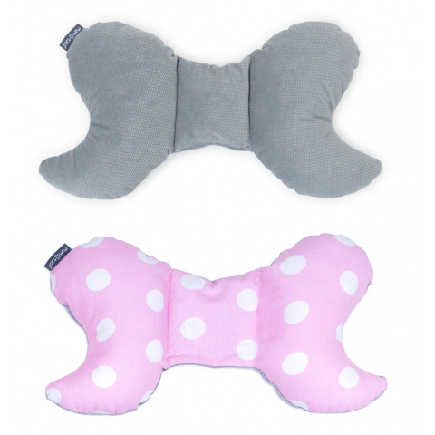 Teljes MTT Pillangó párna - Rózsaszín alapon fehér pöttyök - Szürke háttal termékleírás