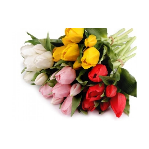 Mű tulipán csokor - 7 szál dekorációs kellék 1 kép