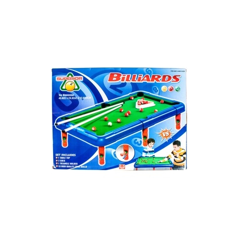 Játszatok egy izgalmas pool billiárd partit! A Műanyag biliárdasztal megtanítja, hogyan kell ezt a sportot játszani. A golyók, a dákók és a háromszög is műanyagból készült, a golyók egyszínűek és számozottak. A játék lényege, hogy minél több golyót eltüntess a lyukakban, a fehér golyó segítségével. A labdák ha leesnek, az asztal lábában kötnek ki, ahonnan az adagolóval tudjátok őket kivenni. Összerakott méretek: 43 x 25 x 12 cm.