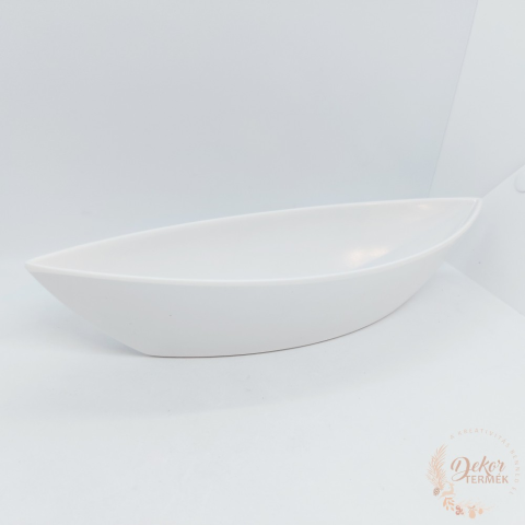 Méret: 32x11x6,6 cm Szín: fehér Anyag: műanyag Tömeg: 163 gramm Műanyag csónak tál fehér színben. Felhasználható tavaszi dekorációkhoz, asztaldíszekhez, virágokhoz!