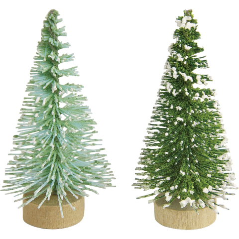 A dekor karácsonyfák a téli időszakban ablakpárkányok, komódok vagy asztalok díszítésére használhatók. Klasszikus fenyő alakúak, tetejük pedig hegyes. Zöld ágaikat fehér hó borítja. A beépített lábnak köszönhetően mindenféle segédeszköz nélkül megállnak. Az ajándékcsomag összesen 20 db 5 cm x 2,5 cm (Ma x Át) méretű kis fát tartalmaz. Tartós műanyagból készültek. Beltéren bárhol használhatók, és tetszés szerint kombinálhatók más dekorációs