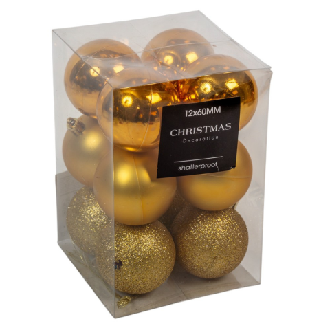 Műanyag gömb arany 6cm 12db-os karácsonyfadísz árgrafikon