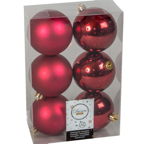 Műanyag gömb bordó 8cm 6db-os karácsonyfadísz 1 kép