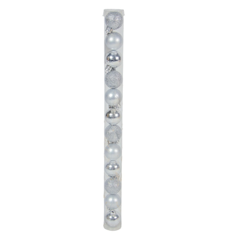 Müanyag gömb ezüst 3cm 12db-os csomag karácsonyfadísz árgrafikon