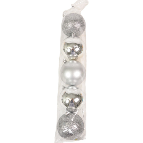 Műanyag gömb ezüst 8cm 5db-os karácsonyfadísz 1 kép