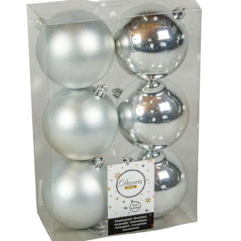 Műanyag gömb ezüst 8cm 6db-os karácsonyfadísz árgrafikon