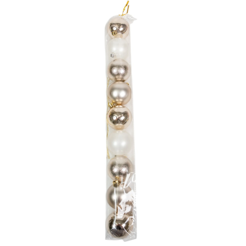 Műanyag gömb fehér gyöngy- világos arany 5cm 9db-os
