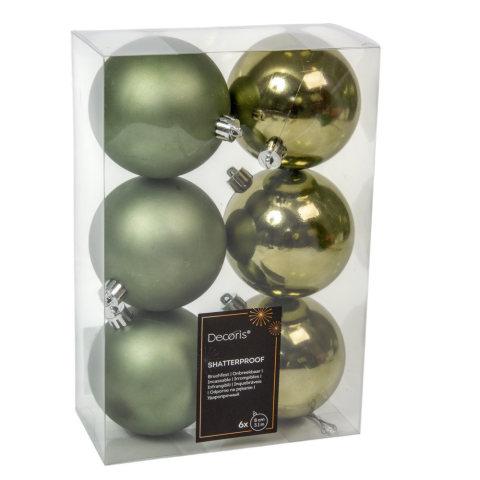 Műanyag gömb rozmaring 8cm 6db-os csomag karácsonyfadísz árgrafikon