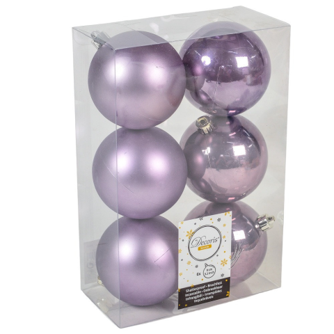 Műanyag gömb világos lila 8cm 6db-os karácsonyfadísz 1 kép