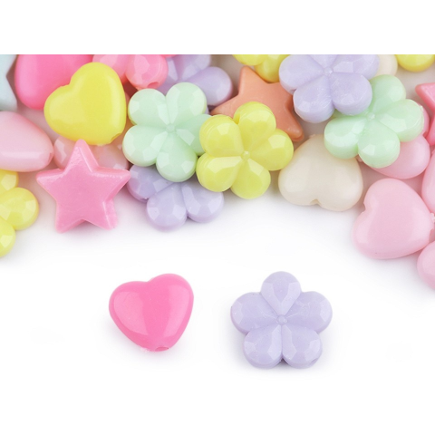 Műanyag gyöngyök csillag, szív, virág 20 g gyöngy 1 kép