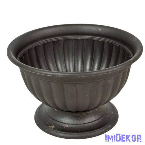 Műanyag kerek bordás talpas tál D26 M12 cm - Grafit dekorációs kellék 1 kép