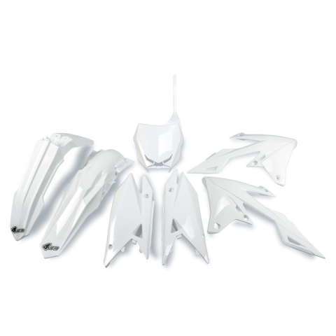 Teljes Karosszéria Készlet Suzuki RM-Z 2018 után UFO fehérTeljes műanyag készlet az UFO-tól, magas minőségű műanyagból, az eredeti burkolat helyettesítésére. A burkolati elemek tökéletesen illeszkednek, és gyorsan, egyszerűen rögzíthetők a jármű eredeti r