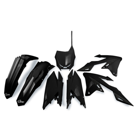 Teljes Karosszéria Készlet Suzuki RM-Z 2018 után UFO FeketeTeljes műanyag készlet az UFO-tól, magas minőségű műanyagból, az eredeti burkolat helyettesítésére. A burkolati elemek tökéletesen illeszkednek és gyorsan, könnyen rögzíthetők a jármű eredeti rögz