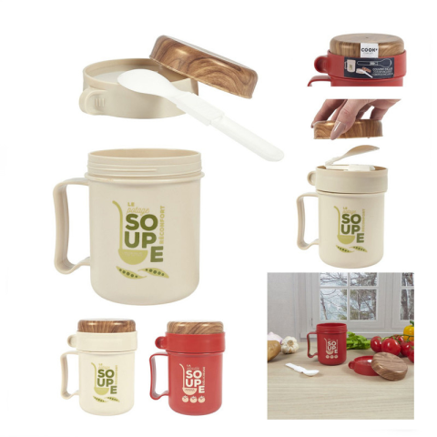 Műanyag leveses bögre tetővel és kanállal KA0363 Műanyag leveses bögre tetővel és kanállal KA0363 Méret: Ø125x13,5cm Tökéletes lesz, ha mozgásban van! - Tartalmazza a fedőt és az összecsukható kanalat - Integrált fogantyú. - Űrtartalom: 500 cl. - Pol