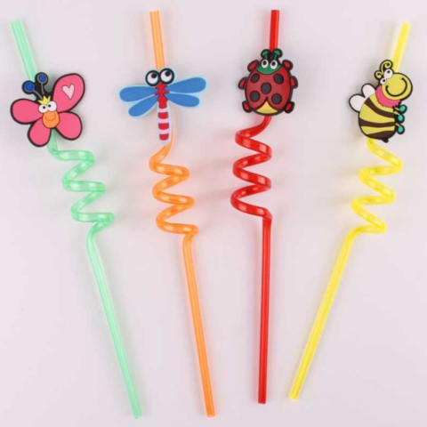 1 kép Műanyag Spirális Szívószál – Rovaros Design, 4 db-os