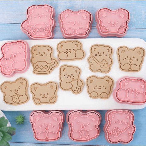 8 darab különböző alakú süteménykiszúró és sütemény nyomda, melynek segítségével igazán különleges, kismaci süteményeket tudsz készíteni.