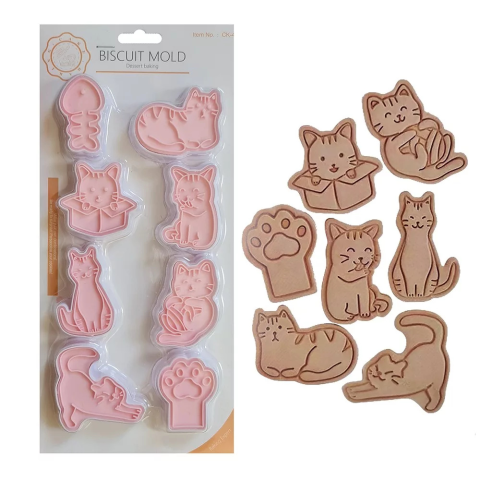 8 darab különböző alakú süteménykiszúró és sütemény nyomda, melynek segítségével igazán különleges macska mintás süteményeket tudsz készíteni.\n