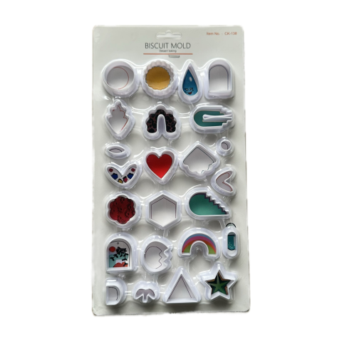 \nHozd létre a legkülönfélébb és legcukibb süteményeket ezzel a 24 darabból álló műanyag sütemény kiszúró forma készlettel! Ideális választás, ha változatos és egyedi formájú édességeket szeretnél készíteni otthon.