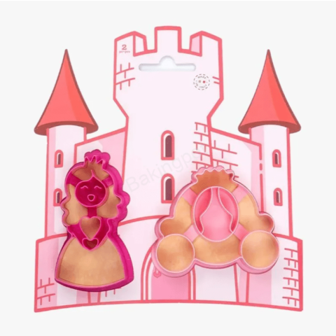 2 darabos műanyag sütemény kiszúró királylány és hintó mintával.