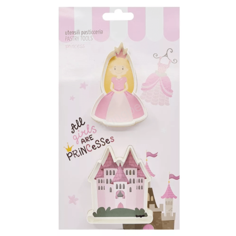 2 darabos műanyag sütemény kiszúró királylány és palota mintával.