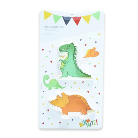 2 darabos műanyag sütemény kiszúró sárkány és rinocérosz mintával.
