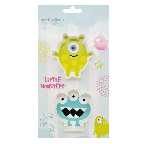 Tulajdonságok: Anyaga: műanyag Mérete: Szörny 1: 7,3 cm × 7,7 cm Szörny 2: 6,6 cm × 7,1 cm Kiszúró vastagsága 2 cm A termék színében eltérés lehet! 2 darabos műanyag sütemény kiszúró szőrny mintával. \n \n ; \n \n ;